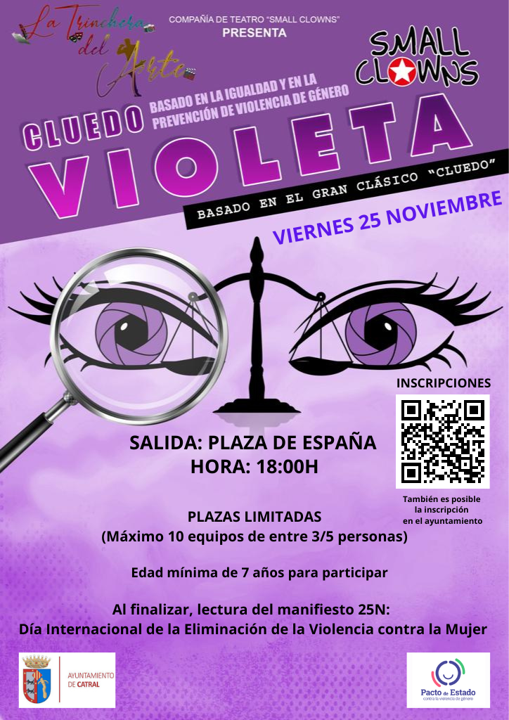 Mañana, viernes 25 de noviembre a las 18h en la Plaza de España, celebraremos un ‘Cluedo Violeta’ ?️♀️