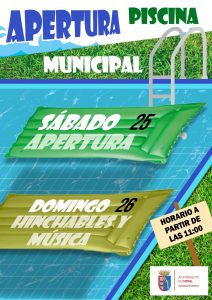 «¡Se viene el Calorcito!, pero también se viene la apertura de la Piscina, disfruta del fresquito y de la agüita a partir del Sábado 25 de junio, y diviértete el domingo 26 con la gran fiesta de hinchables y música.
