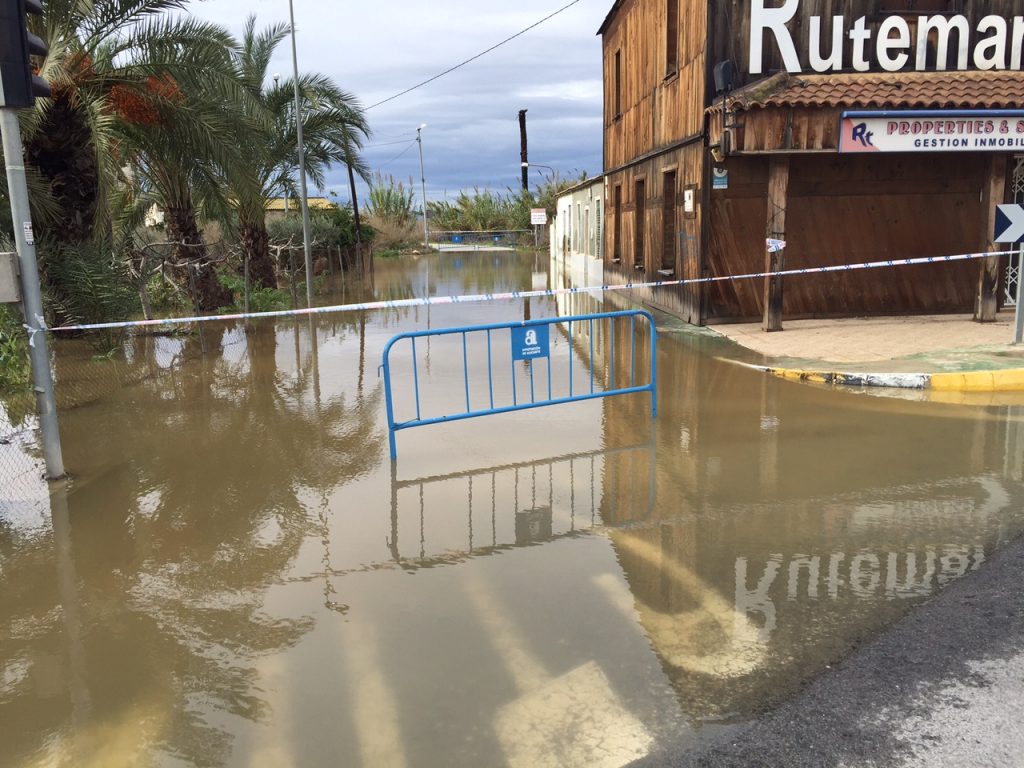 Aviso importante: (actualizado a las 19:30 Hrs). La previsión meteorológica mejora, pero debido a la inundación por desbordamiento de azarbes de avenamiento y acequias de riego, a esta hora continúan cerrados al tráfico los siguientes viales de nuestro término municipal: