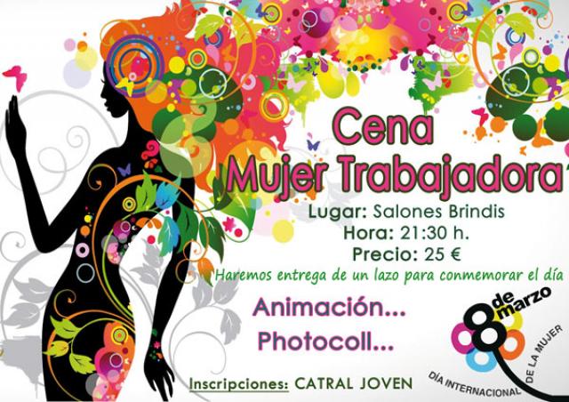 Este viernes 8 de Marzo os invitamos a la cena de la Mujer Trabajadora, habrá animación, photocoll y mucho más. No faltes.