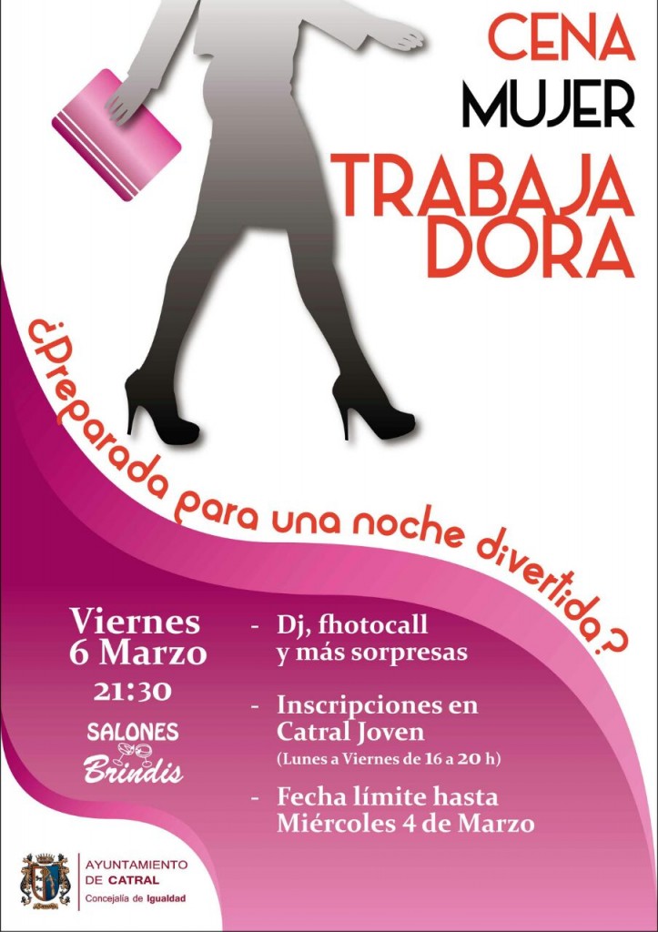 Con motivo de la celebración de la Mujer Trabajadora el Viernes 6 de Marzo a las 21.30 habrá una cena en los Salones Brindis.