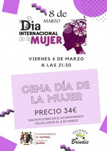Un año más el Ayuntamiento de Catral desde la Concejalía de Igualdad organizan la popular «CENA DÍA DE LA MUJER».