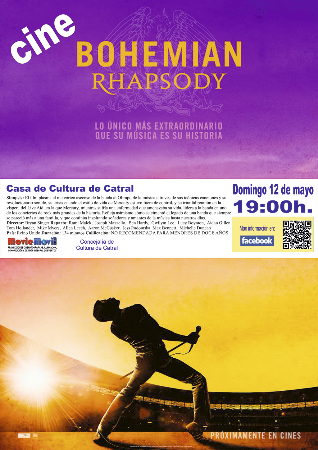 Director: Bryan Singer Reparto: Rami Malek, Josep Mazzello, Ben Hardy, Gwilym Lee, Lucy Boynton, Aidan Gillen, Tom Hollander, Mike Myers, Allen Leech, Aaron McCusker, Jess Radomska, Max Bennett, Michelle Duncan País: Reino Unido Duración: 134 minutos