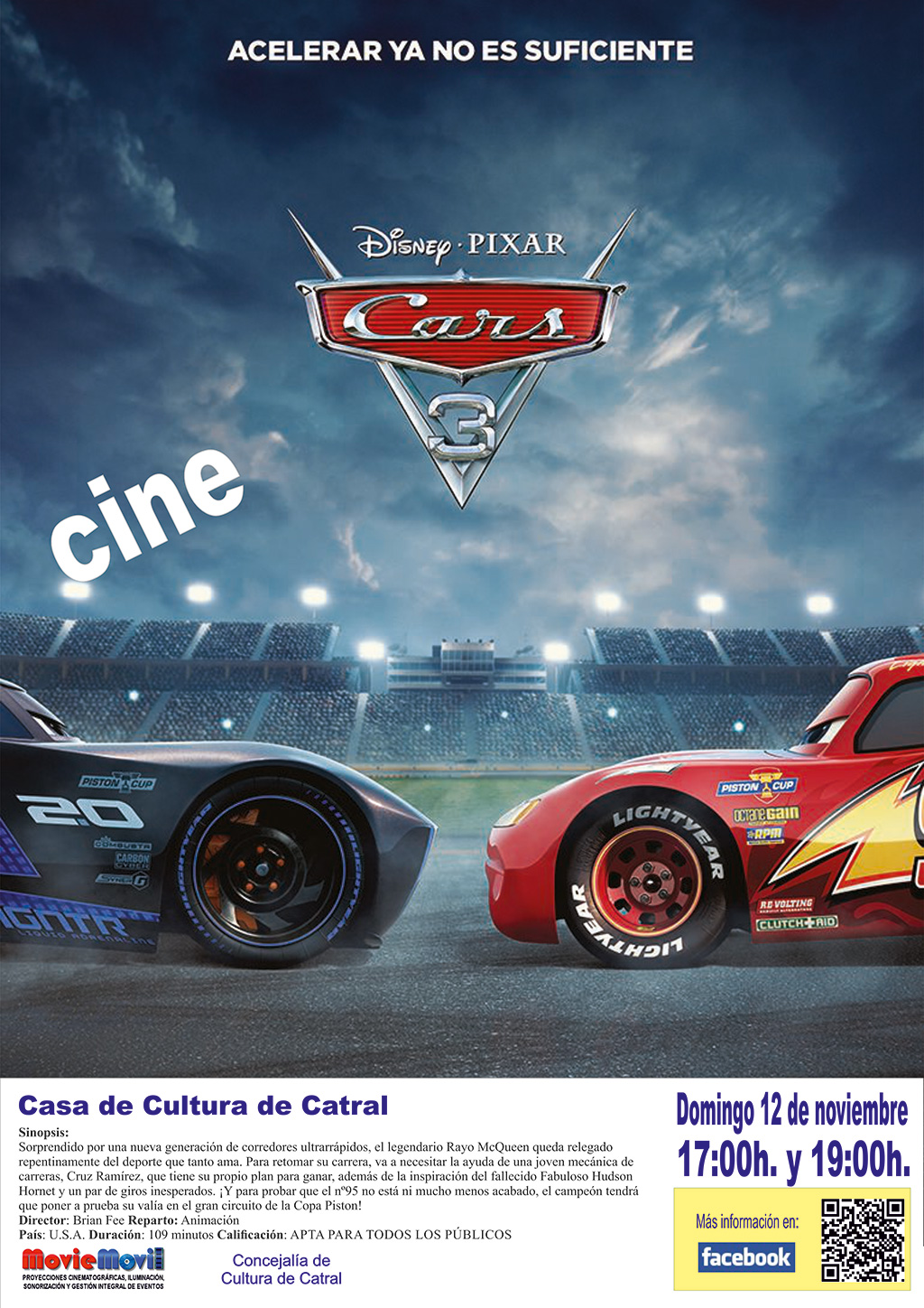 Sorprendido por una nueva generación de corredores ultrarrápidos, el legendario Rayo McQueen queda relegado repentinamente del deporte que tanto ama. Para retomar su carrera, va a necesitar la ayuda de una joven mecánica de carreras, Cruz Ramírez, que tiene su propio plan para ganar, además de la inspiración del fallecido Fabuloso Hudson Hornet y un par de giros inesperados. ¡Y para probar que el nº95 no está ni mucho menos acabado, el campeón tendrá que poner a prueba su valía en el gran circuito de la Copa Piston!