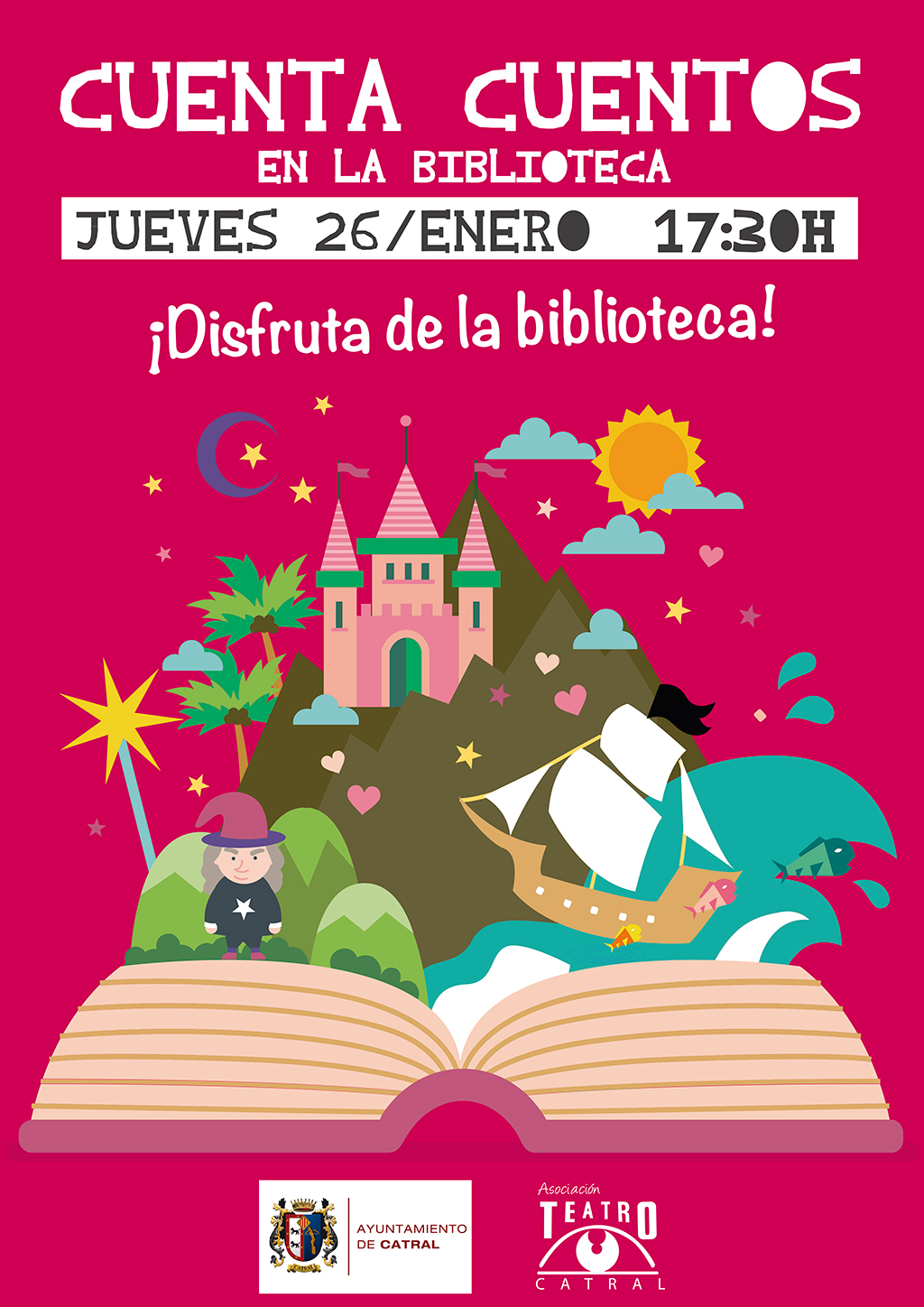 Continuamos el ciclo de Cuenta cuentos, la Concejalía de Cultura organiza un Cuenta cuentos en colaboración con la Asociación Teatro Catral, el ultimo jueves de cada mes, el próximo será el JUEVES 26 de ENERO a las 17:30 en la Biblioteca Municipal.