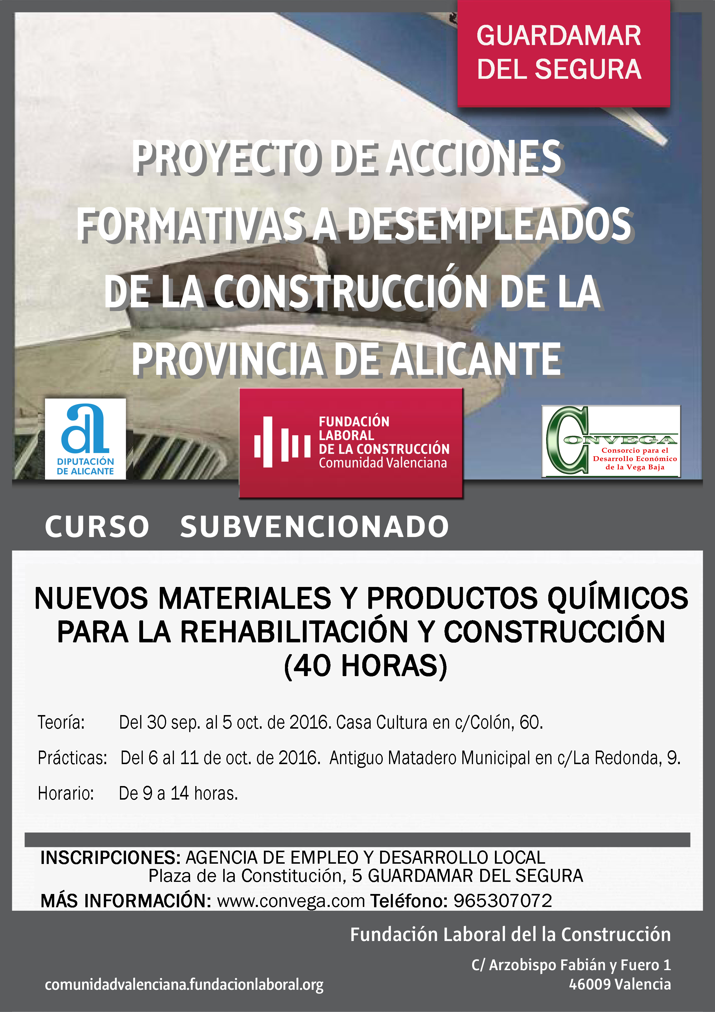 - Practicas: Del 6 de octubre al 11 de octubre en Antiguo Matadero Municipal en C/La redonda, 9 (Guardamar)