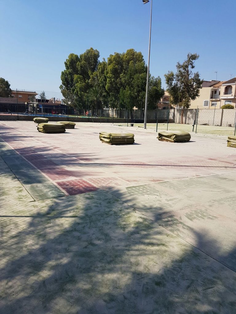 Las obras estarán finalizadas en unos 15 días y consisten en la sustitución de todo el césped artificial desgastado por el uso, ya que las antiguas tenían una antigüedad superior a 10 años, por césped artificial de última generación, sustitución de las redes y reparación de las vallas perimetrales.