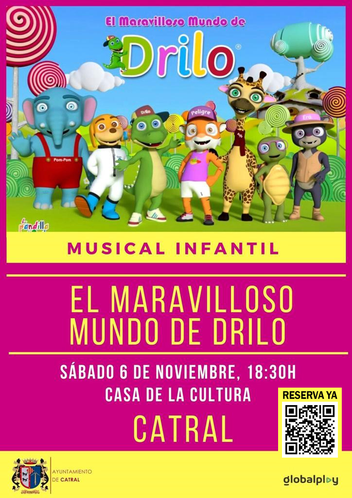 Familia, no os perdáis el musical infantil del Sábado 6 de noviembre, «El maravilloso mundo de Drilo», un espectáculo para l@s más Pequeñ@s.