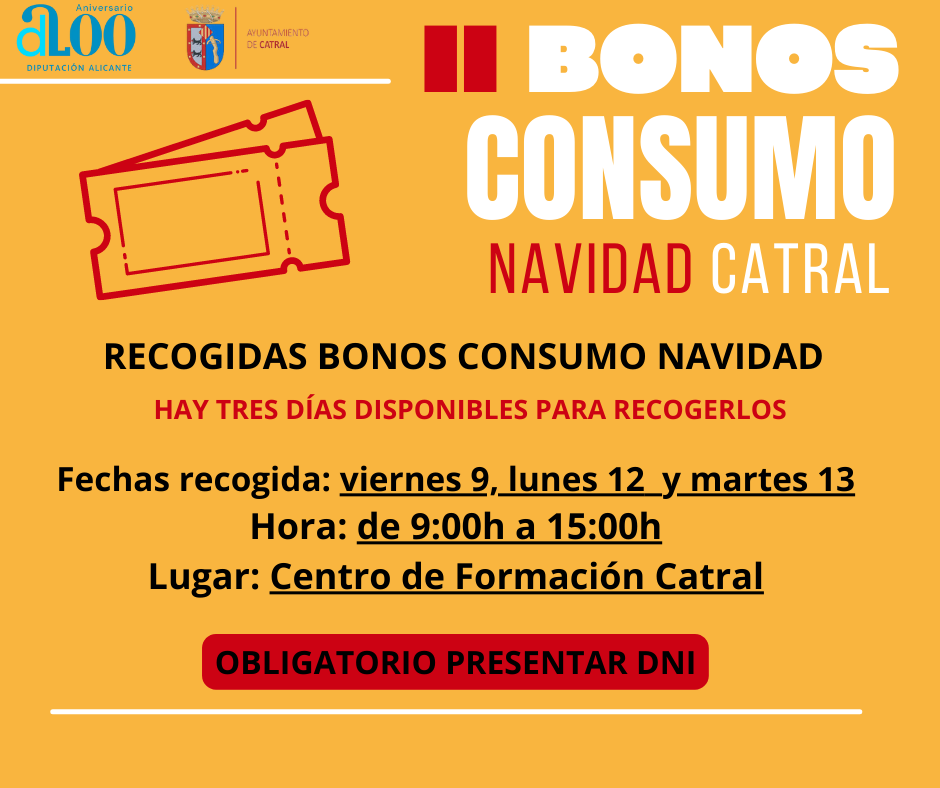 FECHAS RECOGIDA II BONOS CONSUMO CATRAL: NAVIDAD 2022