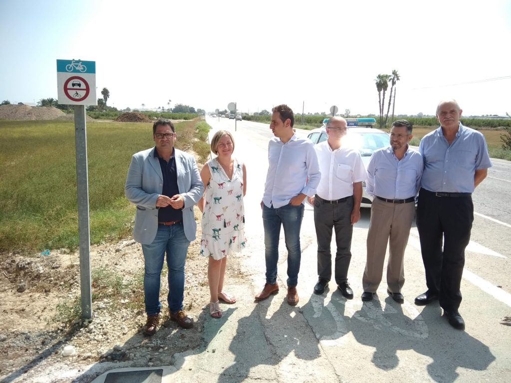 La consellera de Vivienda, Obras Públicas y Vertebración del Territorio, María José Salvador, acompañada por el alcalde de Catral, Pedro Zaplana, y el alcalde de Dolores, José Joaquín Hernández, han visitado esta mañana las obras de adecuación del carril ciclopeatonal anexo a la carretera Catral-Dolores, y cuya primera fase ya ha finalizado.