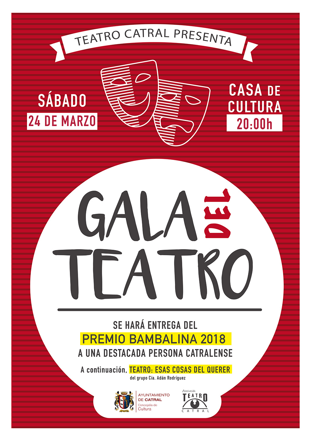 El próximo sábado 24 disfrutaremos del teatro, lo celebraremos con un homenaje a una destacada persona catralense y con una función llamada «Esas cosas del querer» de Cía. Adán Rodríguez. ¿QUIERES SABER QUIÉN SERÁ LA PERSONA PREMIADA? ¡Te esperamos en la Casa de Cultura a las 20h!