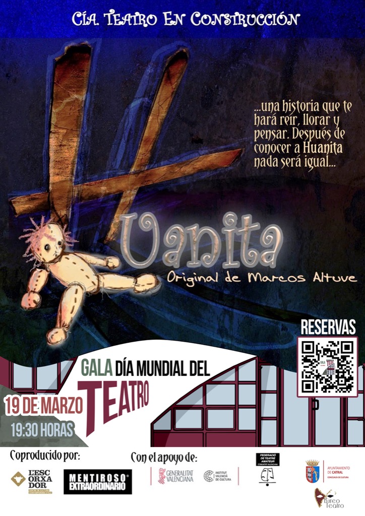 Este próximo sábado 19 de marzo a las 19:30 horas queremos poner en escena el valor del teatro en nuestra sociedad, celebrando el Día Mundial del Teatro por todo lo alto con una gala dónde se hará lectura del manifiesto, la entrega del gran premio Bambalina y disfrutaremos de la representación en directo de la obra: «HUANITA»