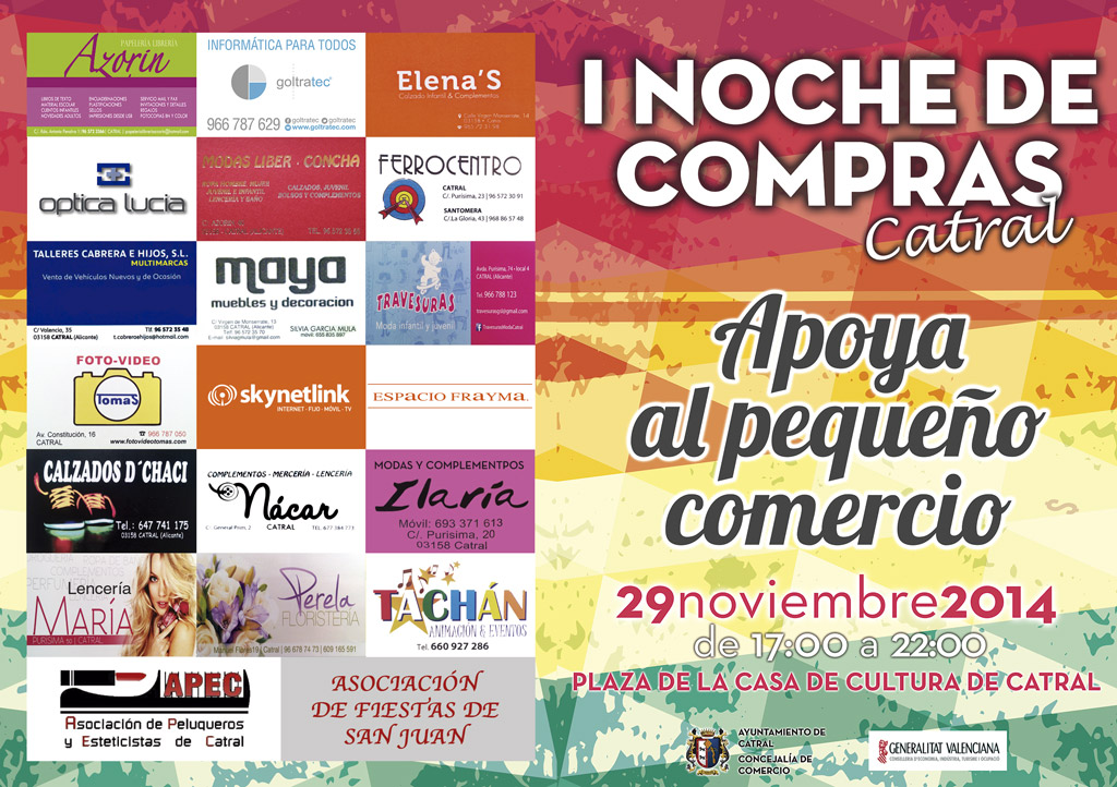 El próximo Sábado 29 se celebrará la I Noche de Compras en Catral. Os dejamos información sobre actividades y comercios que participarán. Felices compras.