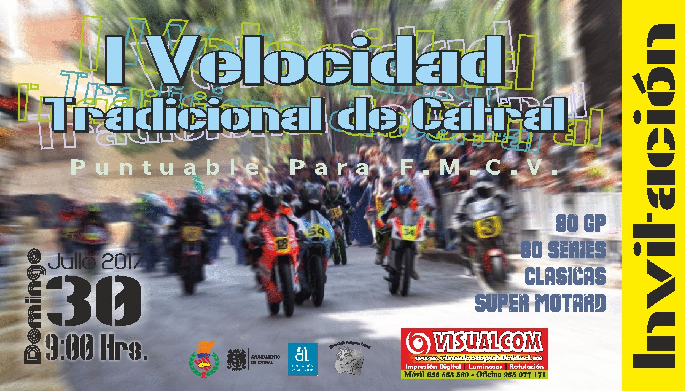 La prueba está organizada por el Club de Motociclismo Polígono de Catral y colabora nuestro Excmo. Ayuntamiento, estando convocadas las siguientes categorías: Clásicas B, Supermotard (NP), 80 cc GP, 80 Proseries.