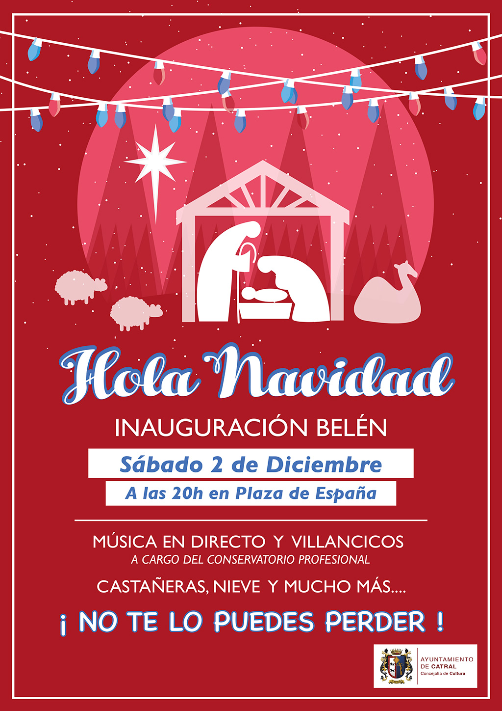 El próximo sábado 2 de diciembre, a partir de las 20h, no te puedes perder la INAUGURACIÓN del Belén Municipal. Tendremos música en directo a cargo del Conservatorio, nieve y muchas sorpresas. ¡Te esperamos!
