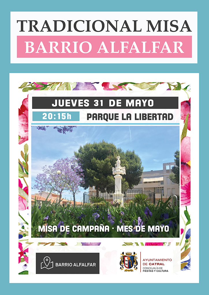 El próximo jueves 31 de mayo en el parque la Libertad contaremos con la tradicional misa de campaña del mes de mayo a las 20:15h