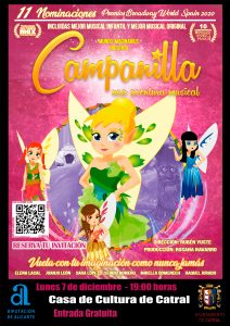 ¡No te lo pierdas, ven a las 19:00 horas el Lunes 7 de diciembre a la presentación del Musical «Campanilla»!