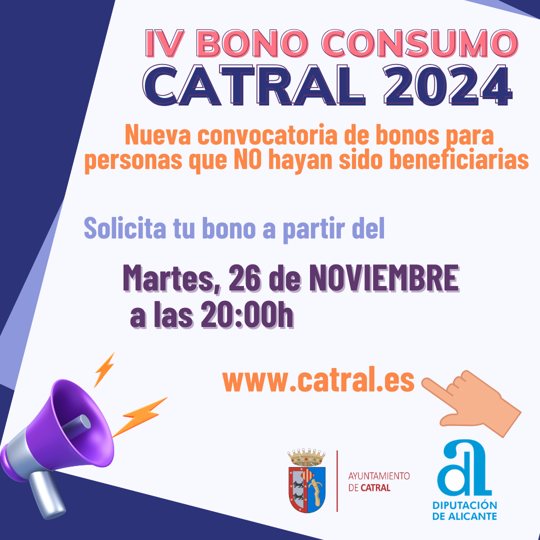 𝐈𝐕 𝐁𝐎𝐍𝐎 𝐂𝐎𝐍𝐒𝐔𝐌𝐎 𝐂𝐀𝐓𝐑𝐀𝐋 𝟐𝟎𝟐𝟒¡Nueva convocatoria para aprovechar los bonos consumo en Catral!