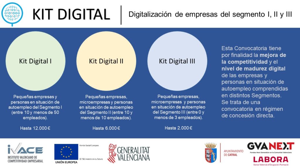 - Kit Digital III. Digitalización de empresas del segmento III (entre 0 y menos de 3 empleados). Para más información pincha aquí.