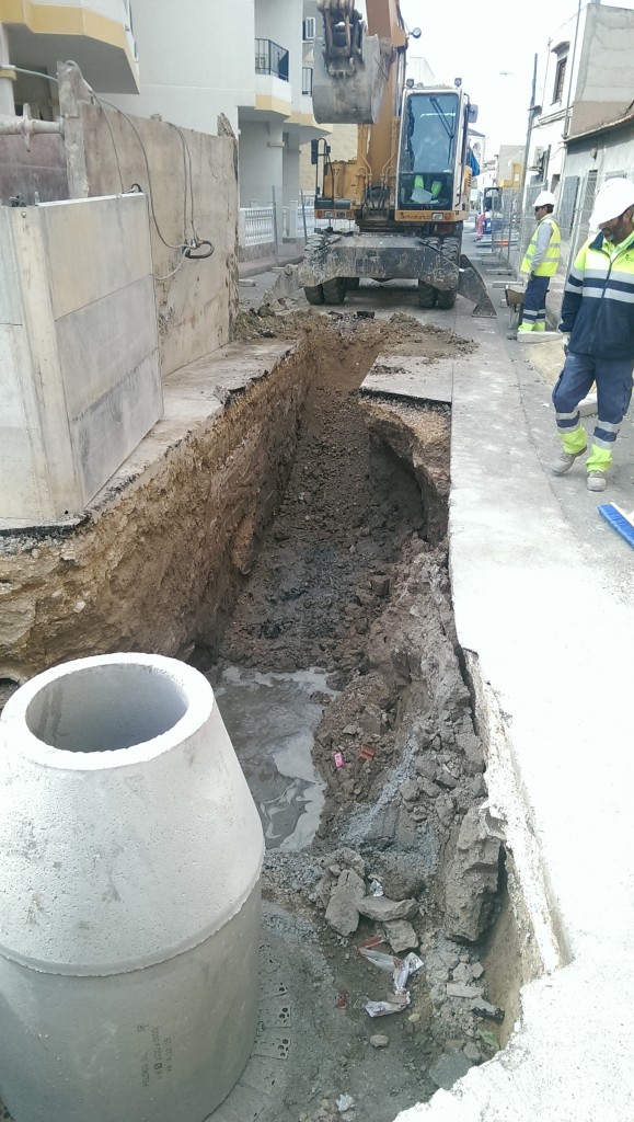 Actualmente ya están en marcha las obras de renovación en la calle La Cruz, donde se está sustituyendo la antigua tubería de hormigón por la nueva tubería de pvc, además de reconstruir los pozos del alcantarillado.