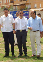 El Alcalde de Catral, Aurelio Albero acompañado por el Vicepresidente de la Diputación, Carlos Mazón, el Diputado Provincial de Deportes, Bernabé Cano y el Gerente de Proaguas, Fernando Modrego, han firmado hoy martes el acta de replanteo que va a dar comienzo a las nuevas obras del campo de fútbol de césped artificial en Catral.
