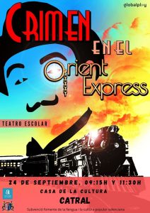 Este viernes 24 de Septiembre no te pierdas el teatro escolar «Crimen en el Orient Express» a las 09:15 y 11:30 horas en la Casa de la Cultura.