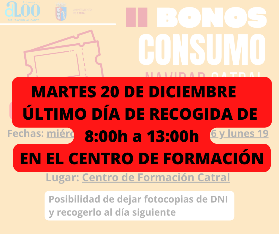 MARTES 20 DE DICIEMBRE, ÚLTIMO DÍA DE RECOGIDA DE BONOS CONSUMO